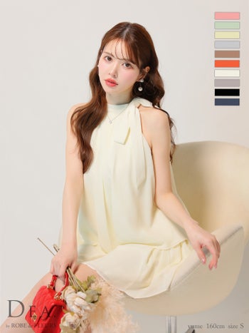 XS~Lあり!上品なワンカラードレス♡ 【DEA.by ROBE de FLEURS/ディア】シフォン ノースリーブ サイドリボン セットアップ エレガント サテン フレアミニドレス (DE3372)