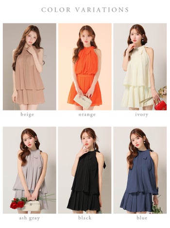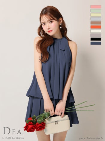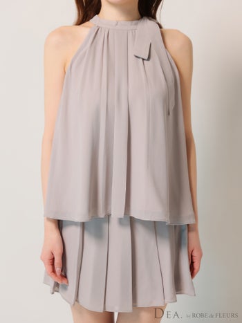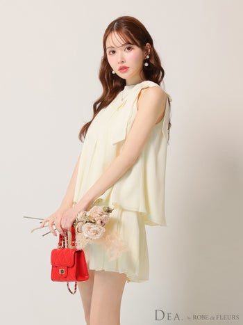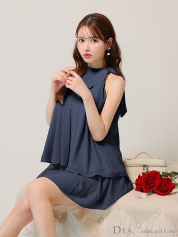 4. 【DEA.by ROBE de FLEURS/ディア】シフォン ノースリーブ サイドリボン セットアップ エレガント サテン フレアミニドレス (DE3372)