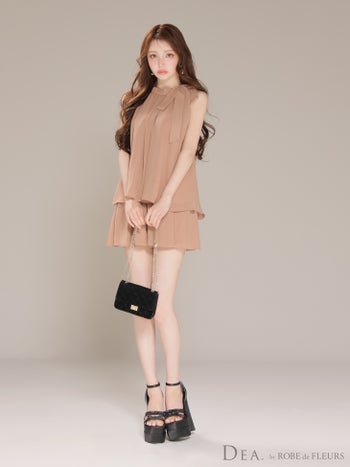3. 【DEA.by ROBE de FLEURS/ディア】シフォン ノースリーブ サイドリボン セットアップ エレガント サテン フレアミニドレス (DE3372)