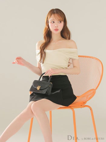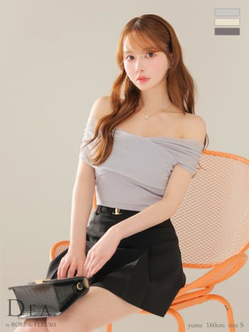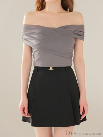 XSあり!上品カジュアルなセットアップ♡ 【DEA.by ROBE de FLEURS/ディア】チュール オフショルダー セットアップ シンプル フレアミニドレス (DE3388)