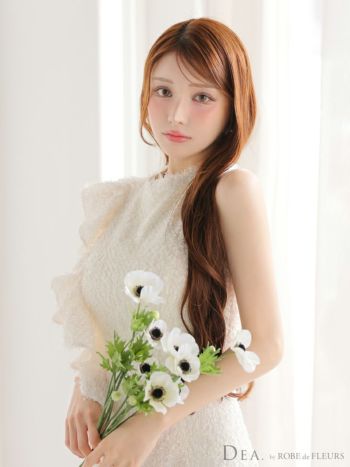 キャバドレス DEA. ROBE de FLEURS ディア ローブドフルール ノースリーブ フリンジジャガード フリル ハイネック アシメ フレアミニドレス