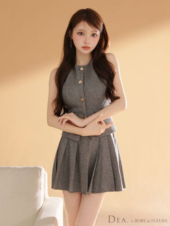 4. 【DEA.by ROBE de FLEURS/ディア】プリーツスカート 襟付き 2way クラシカル セットアップ ノースリーブ ベストフレアミニドレス (DE4306)