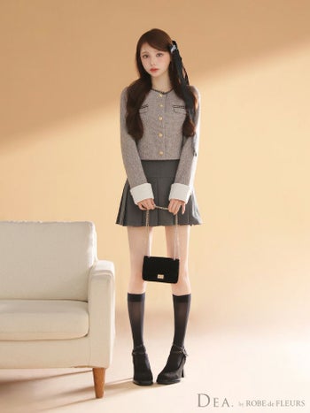 4. 【DEA.by ROBE de FLEURS/ディア】ツイード クラシカル ボタン プリーツスカート セットアップ 長袖 フレアミニドレス (DE4605)