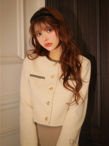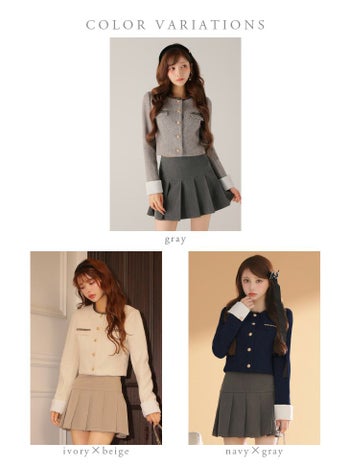 3. 【DEA.by ROBE de FLEURS/ディア】ツイード クラシカル ボタン プリーツスカート セットアップ 長袖 フレアミニドレス (DE4605)