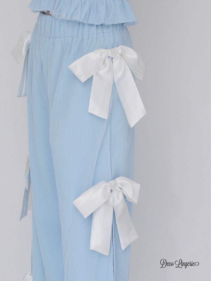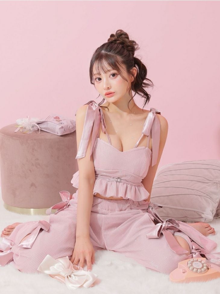 他の画像を見る 別々でも使えるラブリーデザイン♪ 【ルームウェア】【Deco Lingerie/デコランジェリー】セットアップ キャミソール ラメ シフォン ラブリー リボン ロングパンツ ルームウェア 2点セット[キャミソール/ボトムス](DLPJ02) ¥ 21,780 税込 カートに入れる お気に入りに登録する