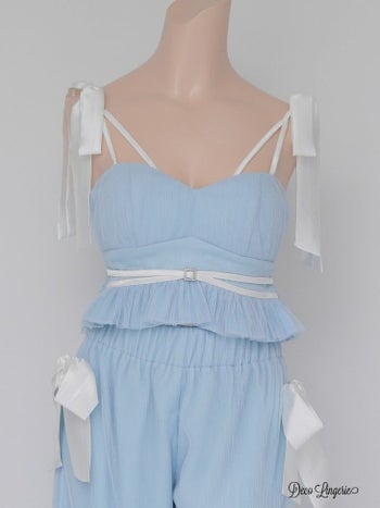 3. 【ルームウェア】【Deco Lingerie/デコランジェリー】セットアップ シフォン リボン ラメ キャミソール ロングパンツ ラブリー ルームウェア 2点セット[キャミソール/ボトムス](DLPJ02)