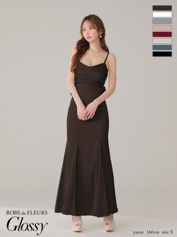 3. 予約商品【2月上旬入荷予定】【Glossy by ROBE de FLEURS/グロッシー】オープンバスト キャミソール ビジューチェーン サテン セクシー マーメイドロングドレス (GL3768)