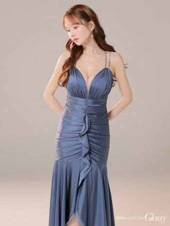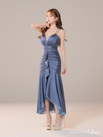 4. 【Glossy by ROBE de FLEURS/グロッシー】キャミソール シンプル フリル サテン フレア マーメイドロングドレス(GL3924)