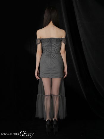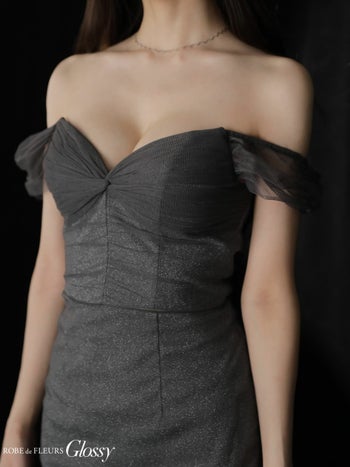 4. 【Glossy by ROBE de FLEURS/グロッシー】オフショルダー ラメニット セットアップ チュール シースルー ドレープ Aラインロングドレス(GL3968)