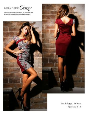 【Glossy by ROBE de FLEURS/グロッシー】ウエストチュール フラワーモチーフ タイトミニドレス[ Sあり][れみ/高級キャバドレス着用][2606]