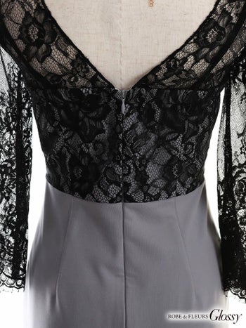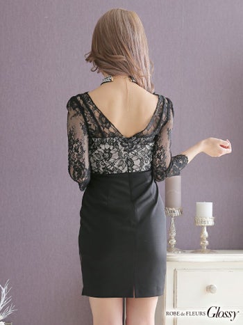 3. 【Glossy by ROBE de FLEURS/グロッシー】エレガント ロングスリーブ レース 袖あり チョーカー タイトミニドレス(GL2389)