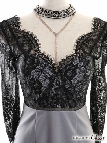 XSあり!チョーカーはその日の気分で付け替えできる♪ 【Glossy by ROBE de FLEURS/グロッシー】エレガント ロングスリーブ レース 袖あり チョーカー タイトミニドレス(GL2389)