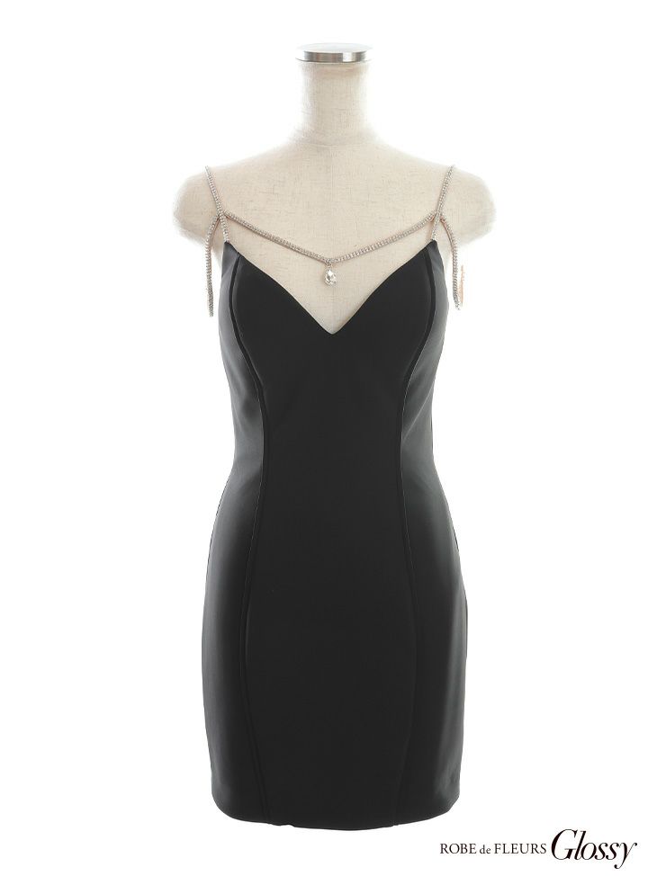 4. 【Glossy by ROBE de FLEURS/グロッシー】キャミソール エレガント デコルテビジュー ワンカラー ストレッチ セクシー タイトミニドレス (GL2816)