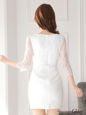4. 【Glossy by ROBE de FLEURS/グロッシー】エレガント ラインビジュー レース袖あり タイトミニドレス(GL2826)