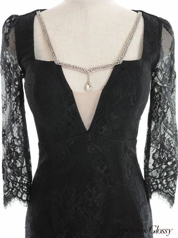 5. 【Glossy by ROBE de FLEURS/グロッシー】エレガント ラインビジュー レース袖あり タイトミニドレス(GL2826)
