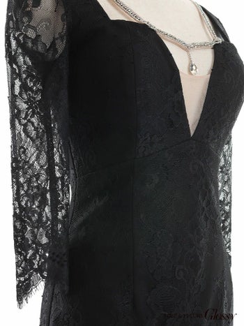 5. 【Glossy by ROBE de FLEURS/グロッシー】華麗 ラインビジュー レース袖あり タイトミニドレス(GL2826)