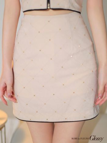 3. 【Glossy by ROBE de FLEURS/グロッシー】キャミソール スタッズ キルティング セットアップ フロントジッパー チェーン タイトミニドレス(GL2896)