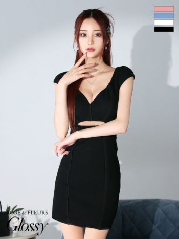 3. 【Glossy by ROBE de FLEURS/グロッシー】ウエストカット ベルトデザイン リブニット ノースリーブ タイトミニドレス(GL3168)