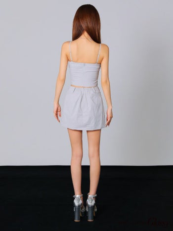 4. 【Glossy by ROBE de FLEURS/グロッシー】ナイロン セットアップ ジップデザイン シャーリング キャミソール タイトミニドレス(GL3293)