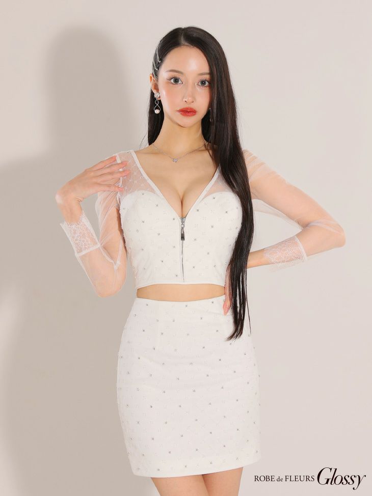 バスト約82cm ウエスト約50~65cm ヒップ約83cm 着丈(トップス)約36cm(スカート)約39cm