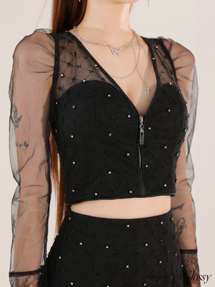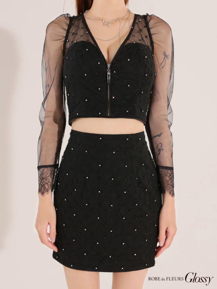 素材 ビーズ付きチュールレース、ポンチ