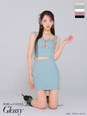 3. 【Glossy by ROBE de FLEURS/グロッシー】ワッフル生地 ノースリーブ バストリボン セットアップ ストレッチ タイトミニドレス(GL3589)
