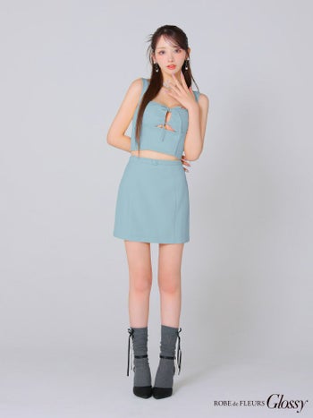 4. 【Glossy by ROBE de FLEURS/グロッシー】ワッフル生地 バストリボン ノースリーブ セットアップ ストレッチ タイトミニドレス(GL3589)