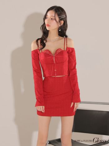 バスト約77cm ウエスト約57~62cm ヒップ約81cm 着丈(トップス)約34cm(スカート)約35cm