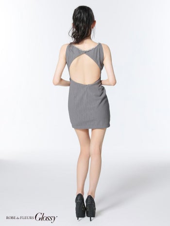 4. 【Glossy by ROBE de FLEURS/グロッシー】バストカット ノースリーブ バックオープン ビジューネック セクシー タイトミニドレス (GL3794)