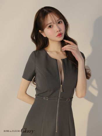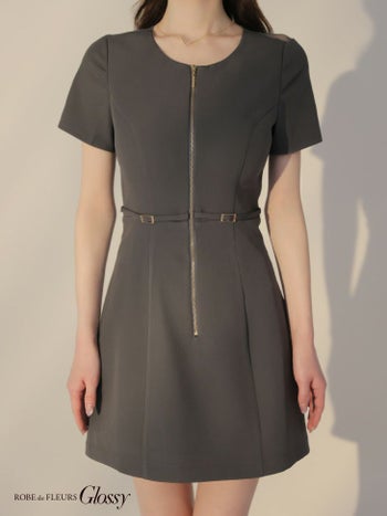 3. 【Glossy by ROBE de FLEURS/グロッシー】半袖 ベルトデザイン バックレース セクシー ジップデザイン フレアミニドレス (GL3795)