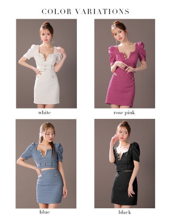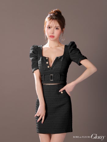バスト約87cm ウエスト約63~70cm ヒップ約87㎝ 着丈(トップス)約40cm(スカート)約44cm
