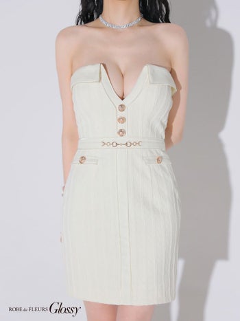 4. 【Glossy by ROBE de FLEURS/グロッシー】バストカット 2way キャミソール フロントボタン ツイード ストライプ柄レース セクシー タイトミニドレス (GL3912)