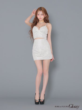 キャバドレス Glossy ROBE de FLEURS グロッシー ローブドフルール ラメツイル セットアップ キャミソール ゴールドチェーン セクシー タイトミニドレス