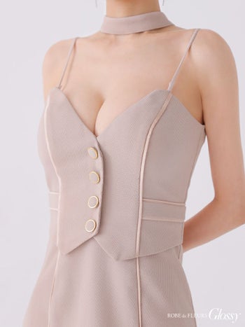 キャバドレス Glossy by ROBE de FLEURS グロッシー オープンバスト 2way キャミソール フロントボタン チョーカーデザイン パイピング セクシー タイトミニドレス