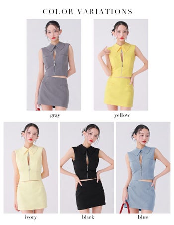 3. 【Glossy by ROBE de FLEURS/グロッシー】襟付き ジップデザイン オープンバスト ノースリーブ バックオープン セットアップ セクシー タイトミニドレス (GL3925)
