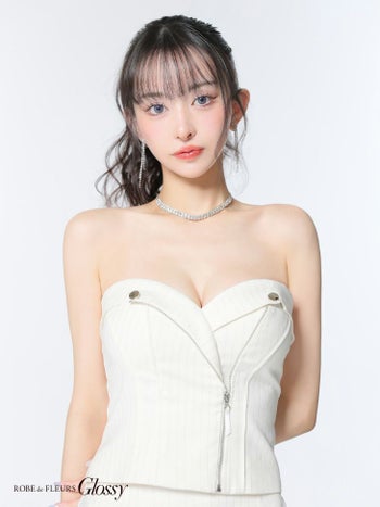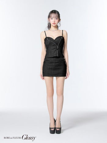 キャバドレス Glossy by ROBE de FLEURS グロッシー セクシー オープンバスト 2way キャミソール ジップデザイン ストライプ柄 セットアップ タイトミニドレス