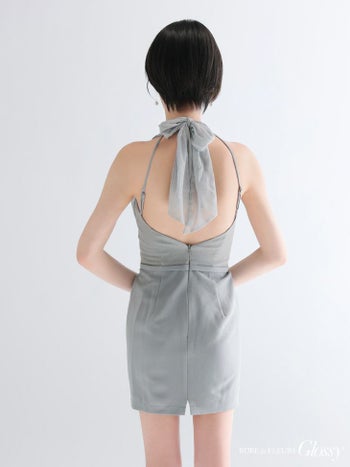 4. 【Glossy by ROBE de FLEURS/グロッシー】ホルターネック ギャザー ウエストベルト ラメ チュール セクシー タイトミニドレス (GL3950)