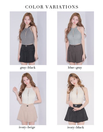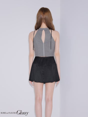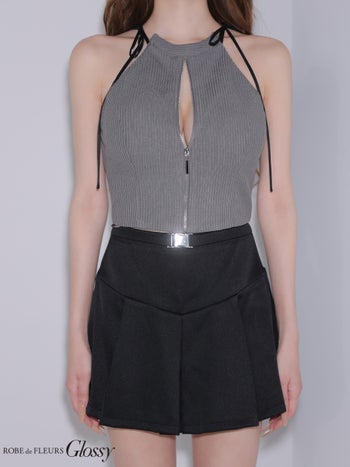 4. 【Glossy by ROBE de FLEURS/グロッシー】バックルベルト リブ ジップデザイン セットアップ リボン ノースリーブ フレアミニドレス (GL4173)