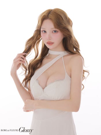 3. 予約商品【4月中旬入荷予定】【Glossy by ROBE de FLEURS/グロッシー】ホルターネック バックリボン ラメニット アシンメトリー フラワーレース タイトミニドレス (GL4186)