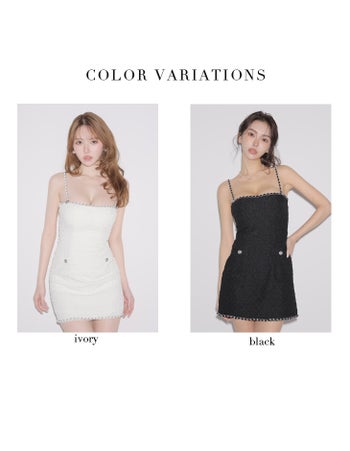 3. 【Glossy by ROBE de FLEURS/グロッシー】ラインチェーン シンプル キャミソール ジャガード タイトミニドレス (GL4190)