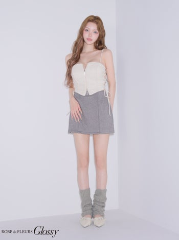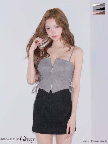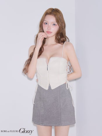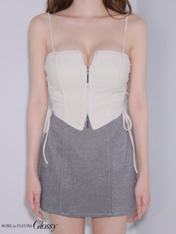 XSあり!肩紐は取り外し可能♡ 【Glossy by ROBE de FLEURS/グロッシー】バイカラー ジップデザイン キャミソール サイドレースアップ セットアップ 2way タイトミニドレス (GL4351)