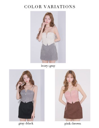 3. 【Glossy by ROBE de FLEURS/グロッシー】バイカラー ジップデザイン キャミソール サイドレースアップ セットアップ 2way タイトミニドレス (GL4351)