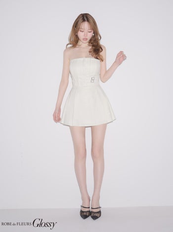 XSあり!ベルトデザインがモードなアクセントに☆ 【Glossy by ROBE de FLEURS/グロッシー】バストカット セットアップ ベルトデザイン スパンコール ワンカラー ベア フレアミニドレス (GL4356)