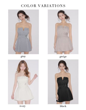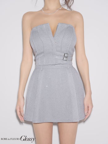 3. 【Glossy by ROBE de FLEURS/グロッシー】セットアップ ベルトデザイン スパンコール ワンカラー ベア バストカット フレアミニドレス (GL4356)