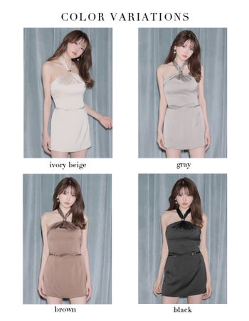 4. 【Glossy by ROBE de FLEURS/グロッシー】ネックリボン バックシャン ラメジャガード セットアップ ホルターネック タイトミニドレス (GL4359)