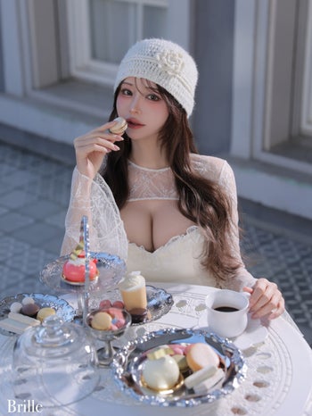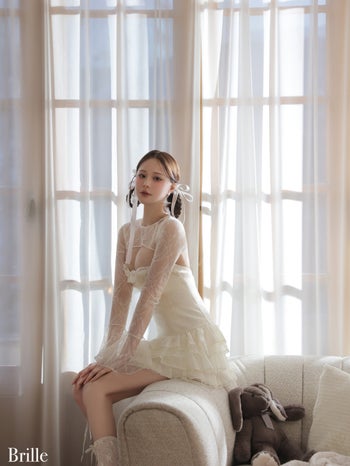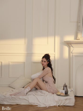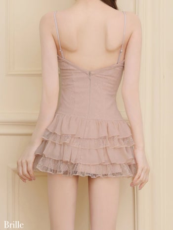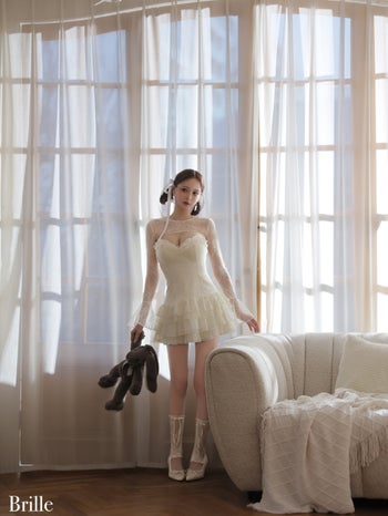 4. 予約商品【4月下旬入荷予定】【Brille/ブリエ】オープンバスト レース シフォン ティアードフリル ボレロ 長袖 フレアミニドレス(brille4161)