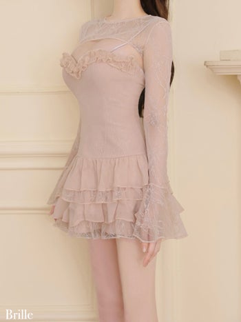 5. 予約商品【4月下旬入荷予定】【Brille/ブリエ】オープンバスト レース シフォン ティアードフリル ボレロ 長袖 フレアミニドレス(brille4161)