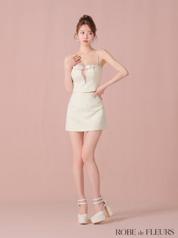 4. 【ROBEdeFLEURS/ローブドフルール】ビジュー セットアップ バストリボン ガーリー キャミソール タイトミニドレス(fm3456)