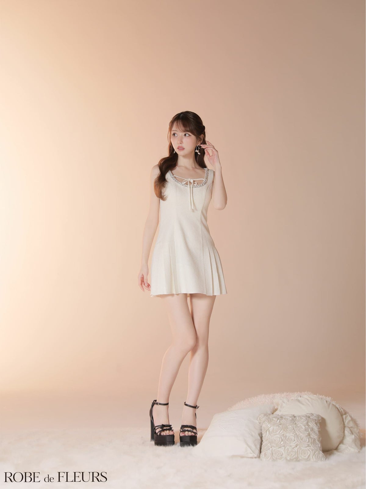 他の画像を見る XSあり!上品な可愛さ♡ 予約商品【2月中旬入荷予定】【ROBEdeFLEURS/ローブドフルール】リボン ボックスプリーツ ビジュー キャミソール ガーリー フレアミニドレス (fm3399) 予約 ¥ 29,480 税込 詳細を見る お気に入りに登録する