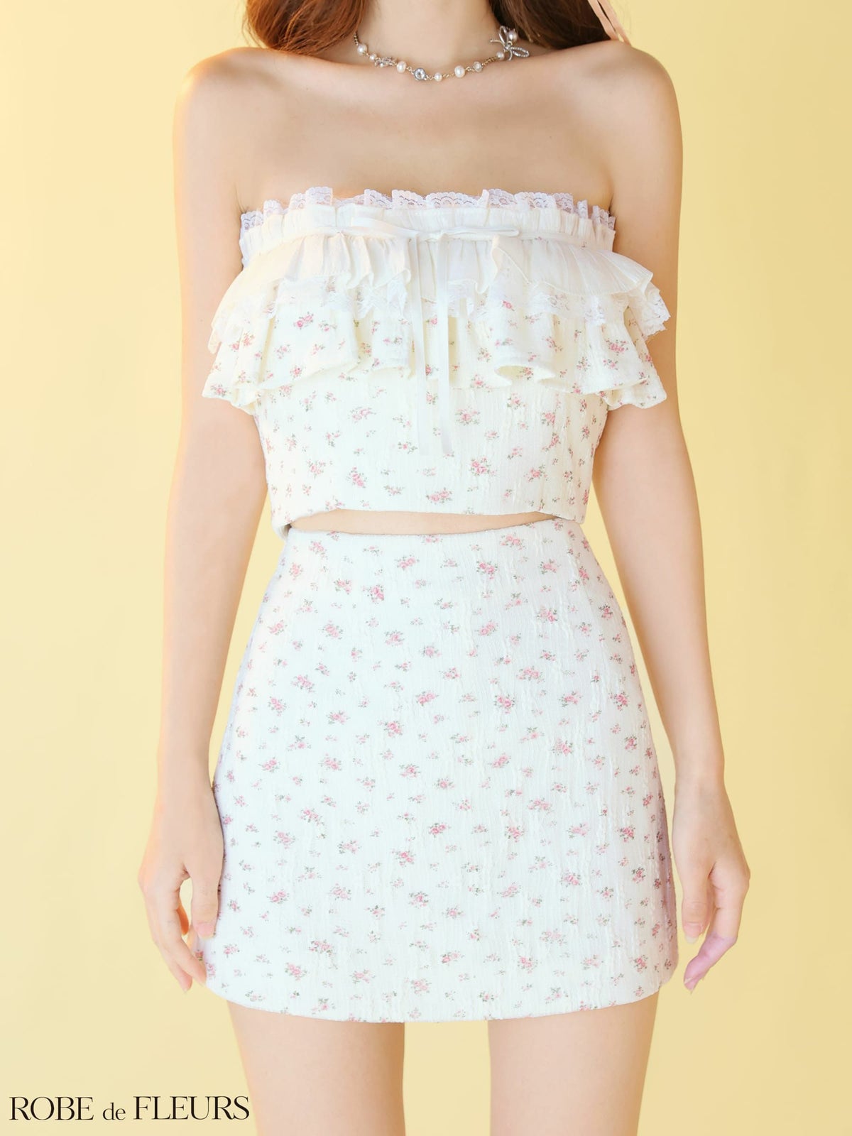 他の画像を見る XSあり!春を先取りできる小花柄デザイン♪ 【ROBEdeFLEURS/ローブドフルール】2way ベア キャミソール レース フリル 小花柄 セットアップ タイトミニドレス (fm3495) ¥ 26,180 税込 詳細を見る お気に入りに登録する